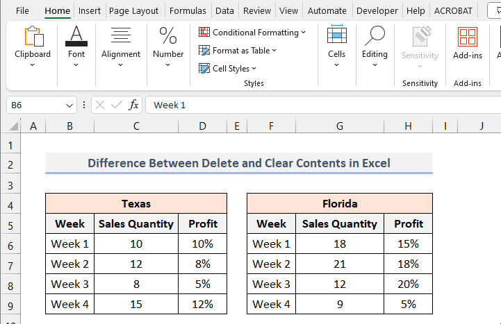Note: So, in this case, we can say that the Delete button and Clear Contents command give a similar output.
