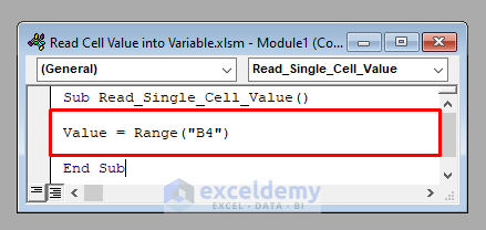 1. Read the Value of a Single Cell into a Variable Using Excel VBA