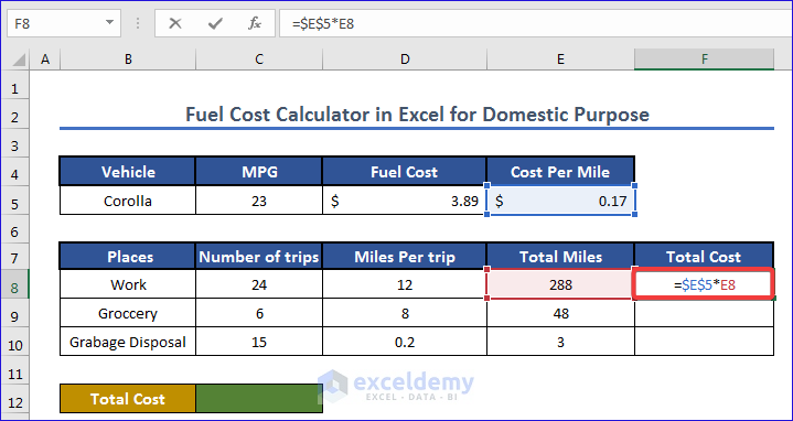 Method 1 – Creating a Fuel Cost Calculator for Business Purposes