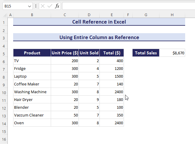 - We have used the formula below in cell C16 to reference the entire sixth row: