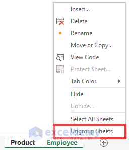 1. Ungroup Sheets Using Mouse